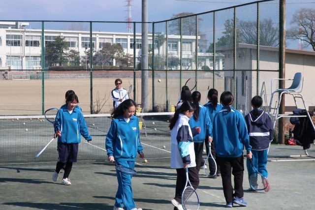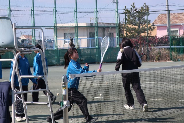 寒さを吹き飛ばす元気な雰囲気で、様々なメニューに取り組んでいました。お互いを励ます声がテニスコート中に響いていました。