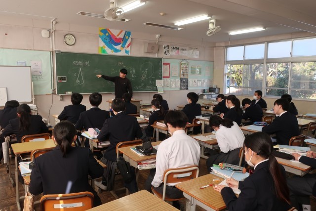 空間図形の学習で、「これまで数人しか解けなかった問題です」と発展問題を示され、がぜんやる気を出していた生徒たちの姿が印象的でした。