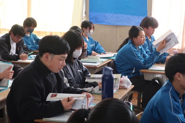 2/4 2-2 受動態と動詞の変化 3 公開日 2026/02/04 更新日 2026/02/04 各学年から 2年2組の英語の授業の様子です。受身形(受動態)の学習で、動詞の変化の仕方を意識しながら文法を学んでいました。