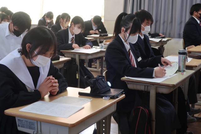 一週間後に迫った中学校生活最後のテストである「確認テスト」に向け、問題文の読み込み方、正解を導き出し方法などを確認しながら学習が進められていました。