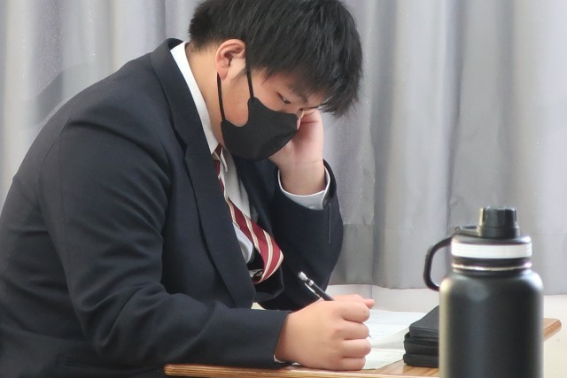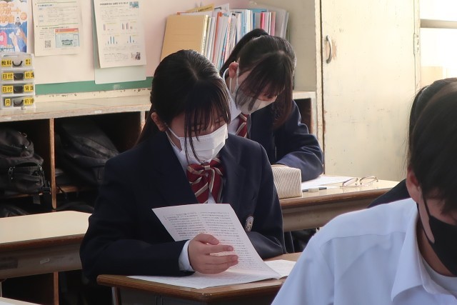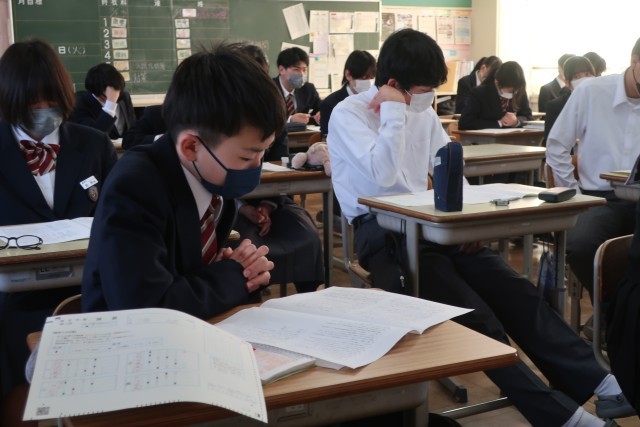 一週間後に迫った中学校生活最後のテストである「確認テスト」に向け、問題文の読み込み方、正解を導き出し方法などを確認しながら学習が進められていました。