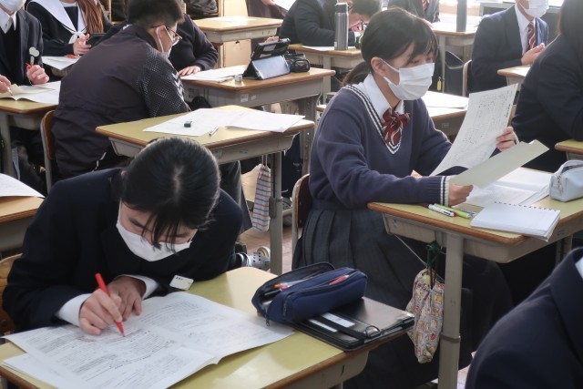 確認テストに向けて、様々なパターンの問題に取り組んでいました。中学校生活最後のテストで悔いが残らない取組をしてほしいと思います。