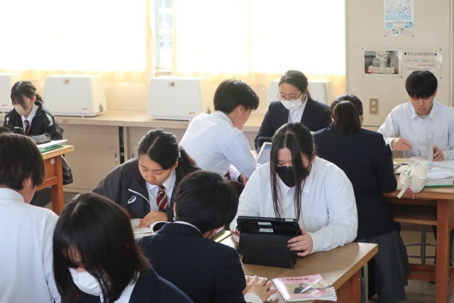 くらしについての学習で、「一人暮らし2年目。自身の給料で洗濯機を買うとしたら、どんなポイントで選ぶ?」をテーマに、それぞれが考えをまとまていました。