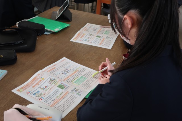 明治安田さんの「金融・保険教育プログラム」を活用し、「持続可能なくらし・地球のためにできることを考えよう」をテーマに、「エシカル消費」をはじめ様々な分野について講義や体験を通して学んでいました。