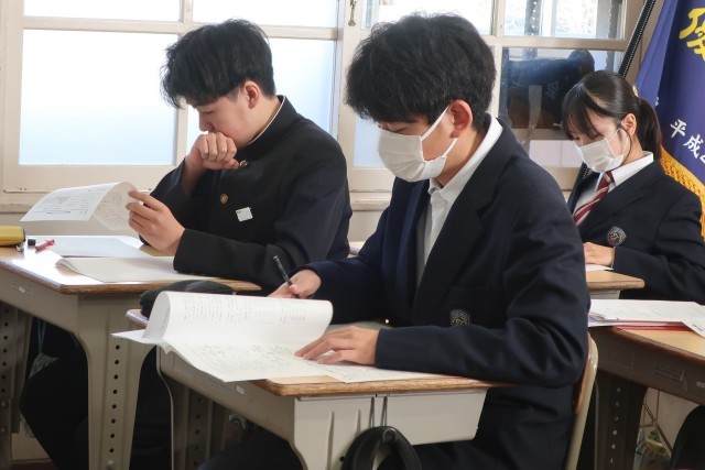 確認テストに向けた予想問題を解き、理解が不十分なところをどんどん教科担任に解説してもらっていました。自身の身になる学習にそれぞれが取り組んでいました。