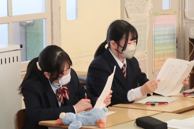 2/9 3-3 正解へのたどり着き方 2 公開日 2026/02/09 更新日 2026/02/09 各学年から 3年3組の国語の授業の様子です。確認テストに向けた予想問題を解きながら、正解を導き出す考え方を仲間と共有していました。