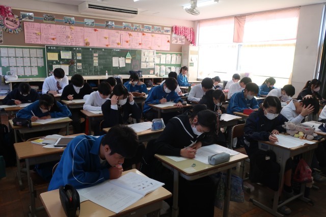 確認テストの予想問題に挑戦し、不安な部分を解消していきます。このあとしっかり解説を聞き、本番への自信をつけて明日を迎えます。