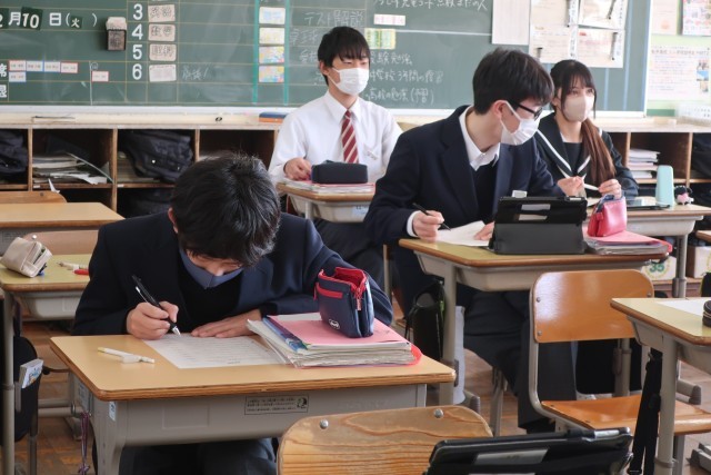 受験対策のプリントに取り組んでいました。確認テストを終えたばかりですが、クラス全員で取り組んでいる様子に感心しました。