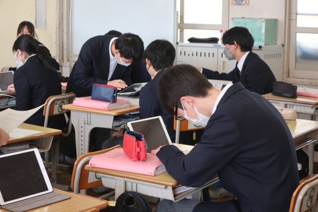 受験対策のプリントに取り組んでいました。確認テストを終えたばかりですが、クラス全員で取り組んでいる様子に感心しました。