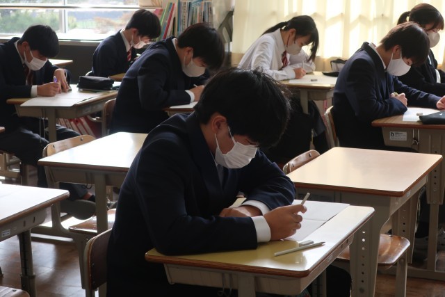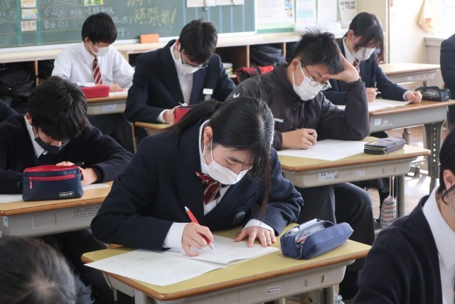確認テストが終わって1週間。公立高校の受験対策と中学校生活の学習のまとめを目的としたプリントに取り組んでいました。