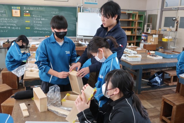 「tsunagaruプロジェクト」として、「人と人とがつながる『tsuna箱』を製作しよう」をテーマに木製品づくりに取り組んでいます。今回は、いよいよパーツの組み立て。各パーツを丁寧に加工し、組立作業に没頭です。