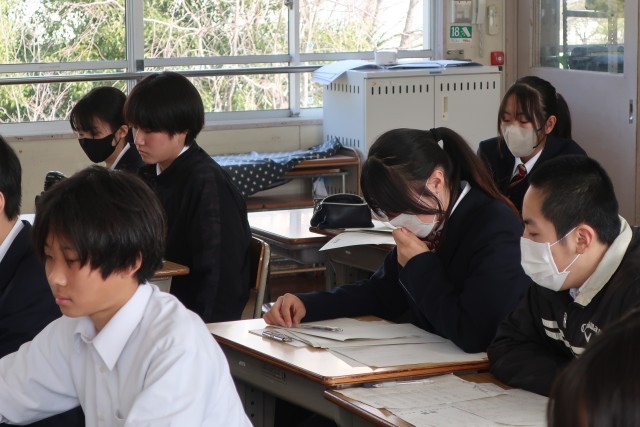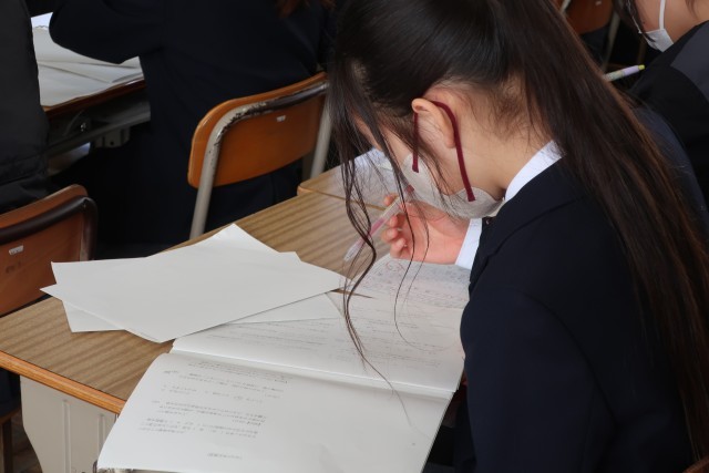 テストが返却され、解説が行われていました。解けなかった問題を改めて見て悔しがる生徒、漢字を正確に覚えることの大切さを痛感している生徒など様々な表情がありました。