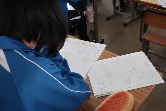 テストが返却され、仲間の力を借りながら必死に解き直しに取り組んでいました。理解していたと思ったことが本番でも発揮できるよう、今後に生きる学習です。