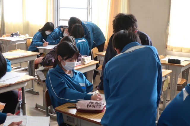 テストが返却され、仲間の力を借りながら必死に解き直しに取り組んでいました。理解していたと思ったことが本番でも発揮できるよう、今後に生きる学習です。