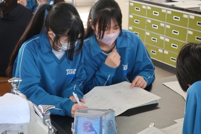 生徒が苦手とする単元の一つ「地震(揺れの伝わり方)」。お互いに説明できるようになるまで、何度も問題を解き直していました。