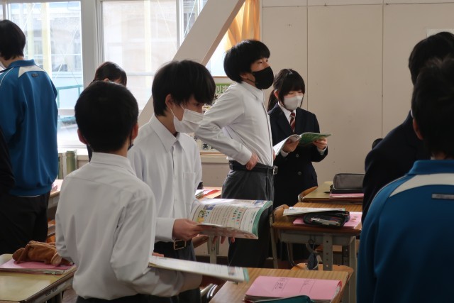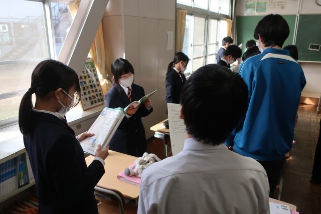 「MY BEST MEMORY」の単元で、それぞれの思い出に残る場面を例文にならって伝え合っていました。
