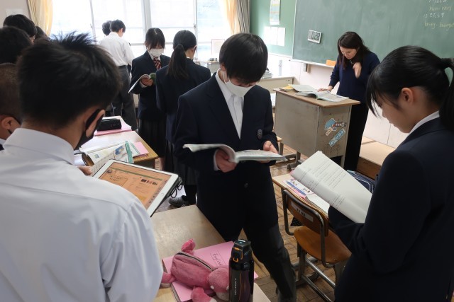 「MY BEST MEMORY」の単元で、それぞれの思い出に残る場面を例文にならって伝え合っていました。