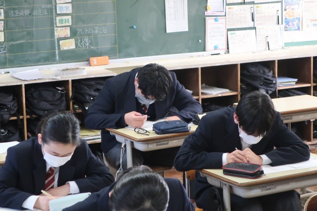 2/18 3-2 弱点を克服して自信をつける 3 公開日 2026/02/18 更新日 2026/02/18 各学年から 3年2組の数学の授業の様子です。これまでの学習の弱点の克服と発展問題に挑戦して、受験に向けて自信をつけています。