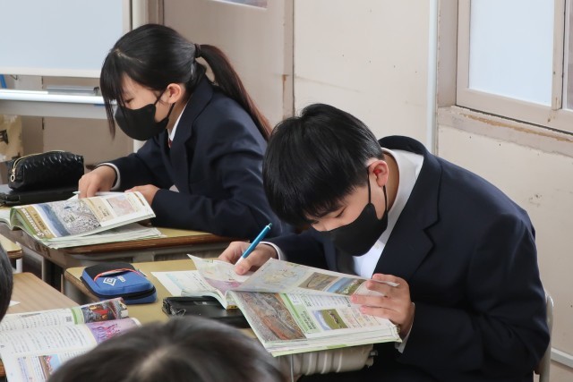 1年3組の社会・地理分野の授業の様子です。