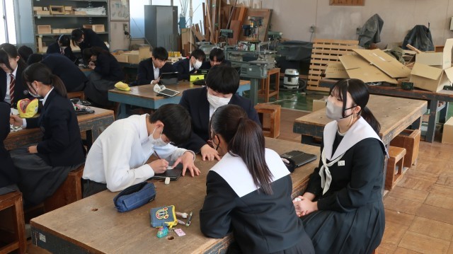 中学校で学習を始めた技術科。3年間のまとめとして、これまで学習したことをふり返っていました。