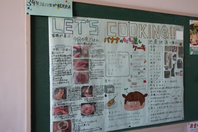 中学校生活の学習の集大成として、「生活に生かす意見発表」をテーマに、各グループで取り組んだ知って得する情報を発表していました。