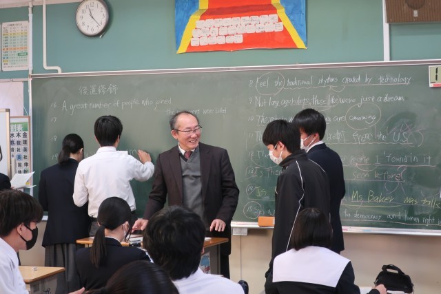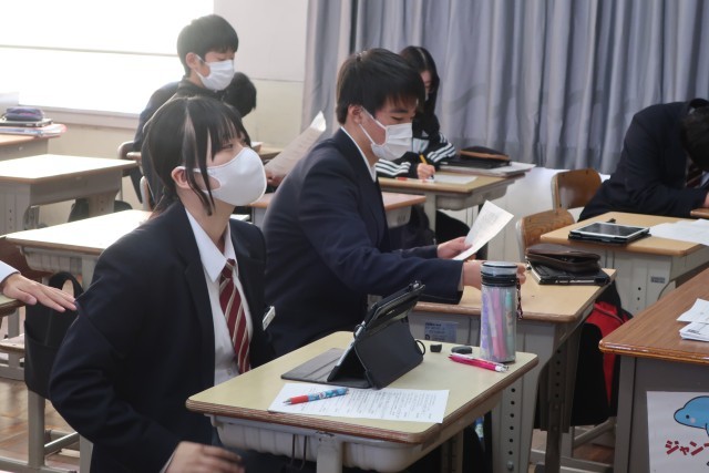 関係代名詞を活用した後置修飾について、英作文を通して学んでいました。積極的に仲間や教科担任とかかわる様子が印象的でした。