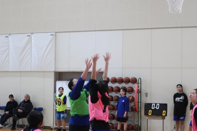 前林中との合同練習です。チームも学校別ではなく両校の混合で組んで活動しています。よいプレーが飛び出したり、がんばっている様子が見られると、お互いに称賛の声が上がり、とてもよい雰囲気で練習に励んでいました。