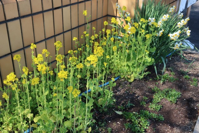 少し前まではまだ小さかった菜の花たちも、冷たい雨に負けることなく立派に成長しています。