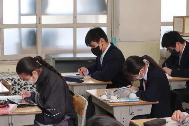 明日の公立一般入試に備え、今日できることを総ざらいです。お互いを気遣い、黙々と学習に取り組んでいる姿が印象的でした。