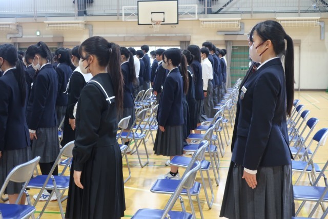 卒業式までの登校日があと8日となった今日、卒業式練習が本格的に始まりました。