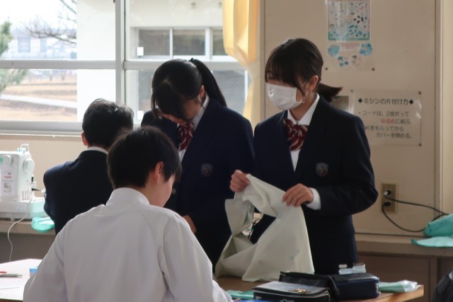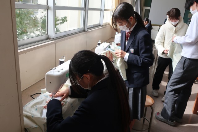 「エコバッグ」の製作に取り組んでいました。作業の手順を仲間としっかり確認しながら活動を進めています。ミシンの操作も手際よく進めています。