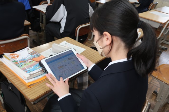 単元のまとめとして、学習プリントの見返したり、学習用タブレットで考えた意見を整理していました。