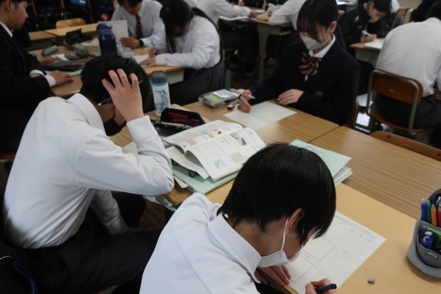 今年度最後の単元となる「確率」の学習に取り組んでいました。いろいろな組み合わせができる問題を図や表を使ってわかりやすく解く方法を探し出していました。