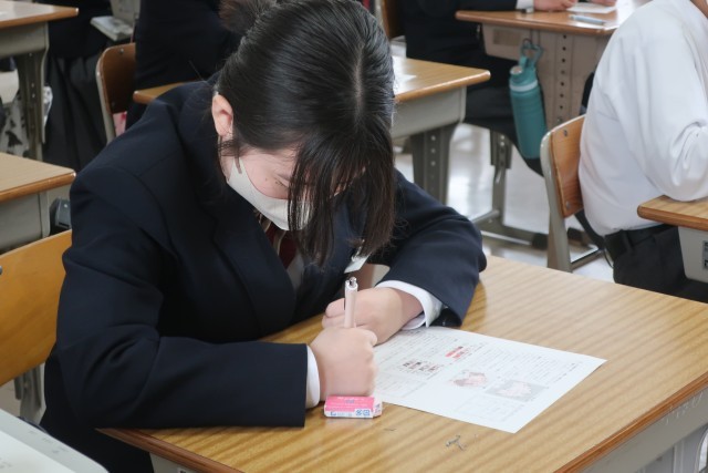 単元のまとめのプリントに取り組んでいました。実施後もすぐに解答を確認し、知識の定着を図っています。