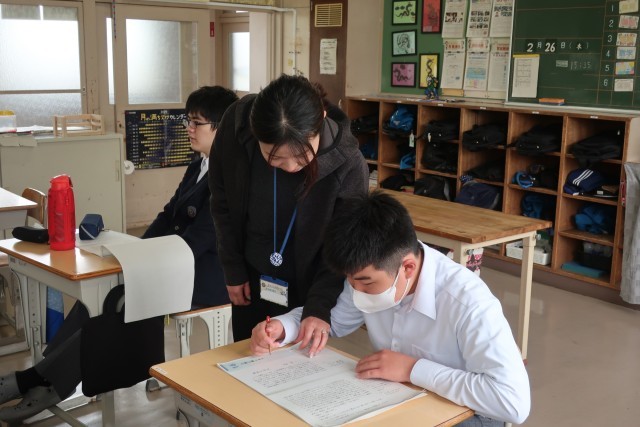 2/27 1,2学級 物語のイメージ 2 公開日 2026/02/27 更新日 2026/02/27 各学年から 1,2学級の国語の授業の様子です。「走れメロス」を読んで、登場人物の特徴や場面の様子が分かる言葉を探し、物語のイメージをつかんでいました。