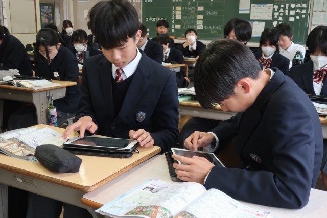 2年4組の社会・歴史分野の授業の様子です。