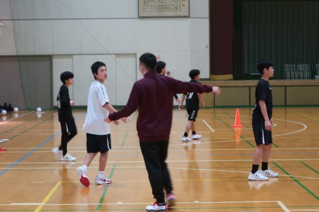 いろいろな攻めのパターンの練習に取り組んでいました。全勝した先日の大会結果に満足することなく、さらに高みを目指したチームづくりです。地域指導者の熱心な指導に生徒たちも真剣に応えています。