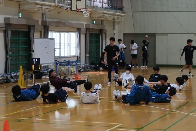 いろいろな攻めのパターンの練習に取り組んでいました。全勝した先日の大会結果に満足することなく、さらに高みを目指したチームづくりです。地域指導者の熱心な指導に生徒たちも真剣に応えています。