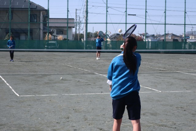 春の大会に向けたペアづくりのためのランキング戦が行われていました。それぞれが全員と対戦し、その勝敗で決定していきます。自信を鼓舞し、アピールするため、いつも以上に元気な声がコート中に響き渡っていました。