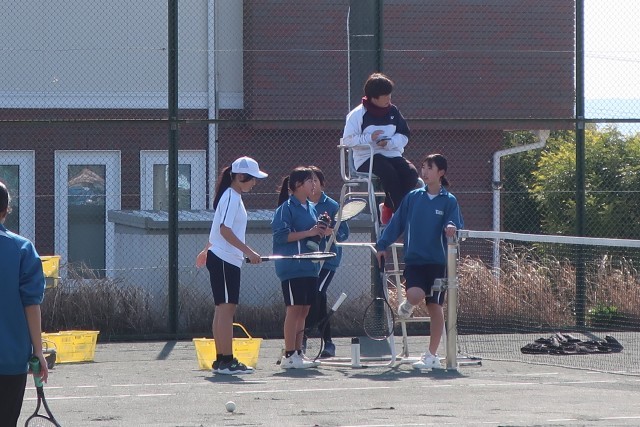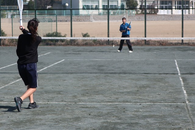 春の大会に向けたペアづくりのためのランキング戦が行われていました。それぞれが全員と対戦し、その勝敗で決定していきます。自信を鼓舞し、アピールするため、いつも以上に元気な声がコート中に響き渡っていました。