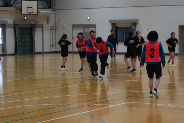 この週末に校内で行われた部活動の様子をお届けします。女子ハンドボール部の活動の様子です。3年生徒のお別れ試合が行われていました。後輩たちからプレゼントをもらい、全員が笑顔いっぱいで活動しています。後輩たちにとっては、県大会出場を果たした尊敬する3年生との久しぶりの対戦。いまだに健在の明るさと元気のよさをしっかりと引き継いでいってほしいと思いました。