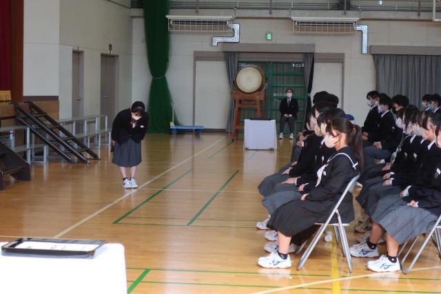 3/4 卒業式全校練習 3 公開日 2026/03/04 更新日 2026/03/04 特別活動 本日の3限に行われた全校練習の様子です。昨日の予行練習で確認した動きについて、本番に向けた最後の全校練習でした。