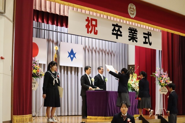 校長先生より、卒業生一人一人に卒業証書が授与されました。