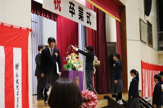 校長先生より、卒業生一人一人に卒業証書が授与されました。