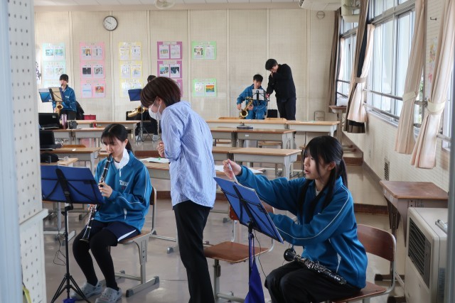 新しくし地域指導者の方が2名加わり、さらに充実した指導を受けての練習です。全体での演奏の際も、手厚い指導をしてくださっています。