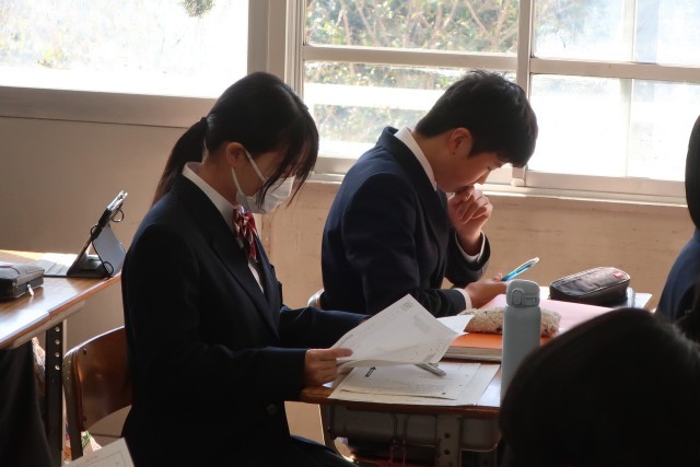単元のまとめのテストが返却され、解説が行われたあと、春休みの課題の一つ「少年の主張作文」の内容を考えていました。