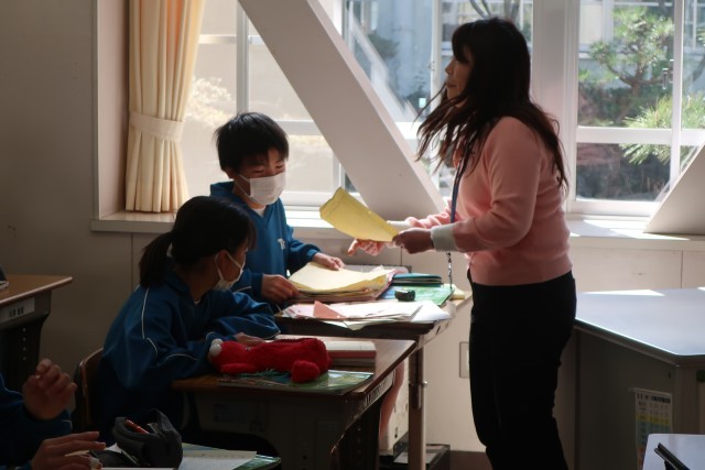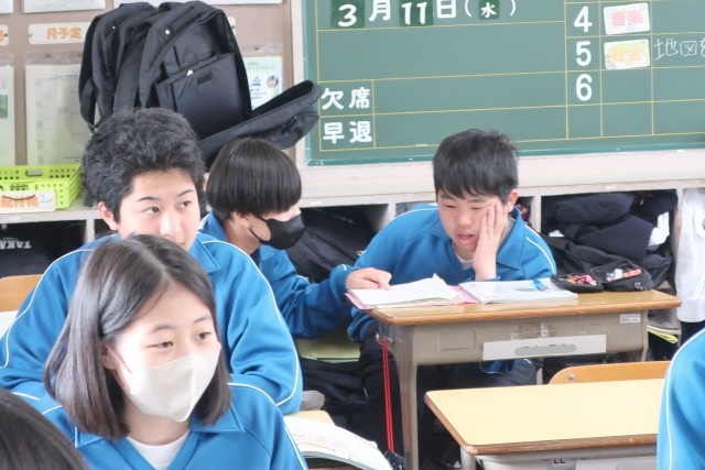教科書本文のリーディングに取り組んでいました。教科担任に続いてのリーディングの声の大きさは校内一の元気のよさです。