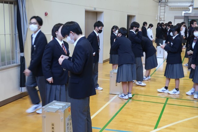 1,2年生全員が体育館に集まり、立候補者の生の演説を聞きながらの選挙となりました。