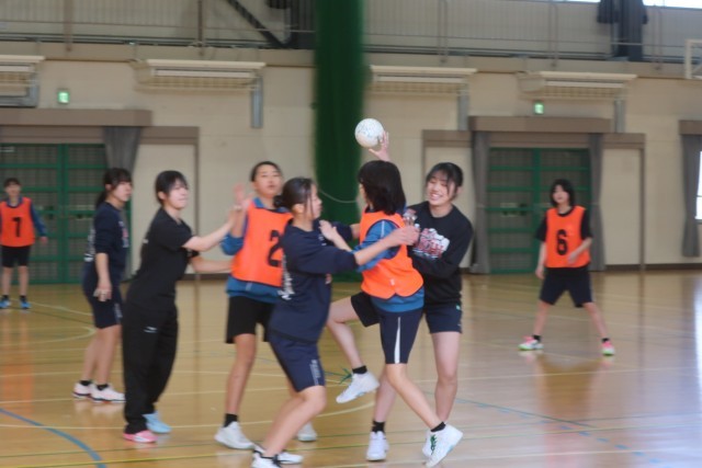 女子ハンドボール部の活動の様子です。3年生(卒業生)や高校生(本校卒業生)も練習に参加し、いつも以上に活気のある活動となりました。