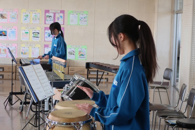 いつもの練習会場から場所を変えて活動していました。自分たちで演奏のスキルを上げるためのトレーニングや練習に積極的に取り組んでいました。